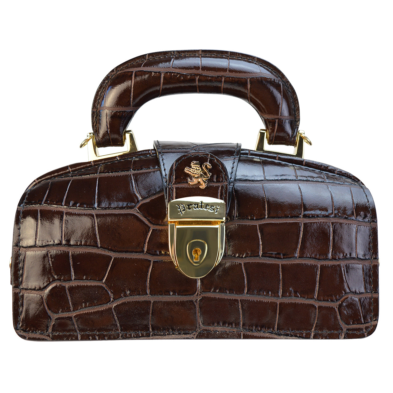 Pratesi Monte di Frassine Cross Body Bag K621 - Croco Embossed Leather Brown - SALE!