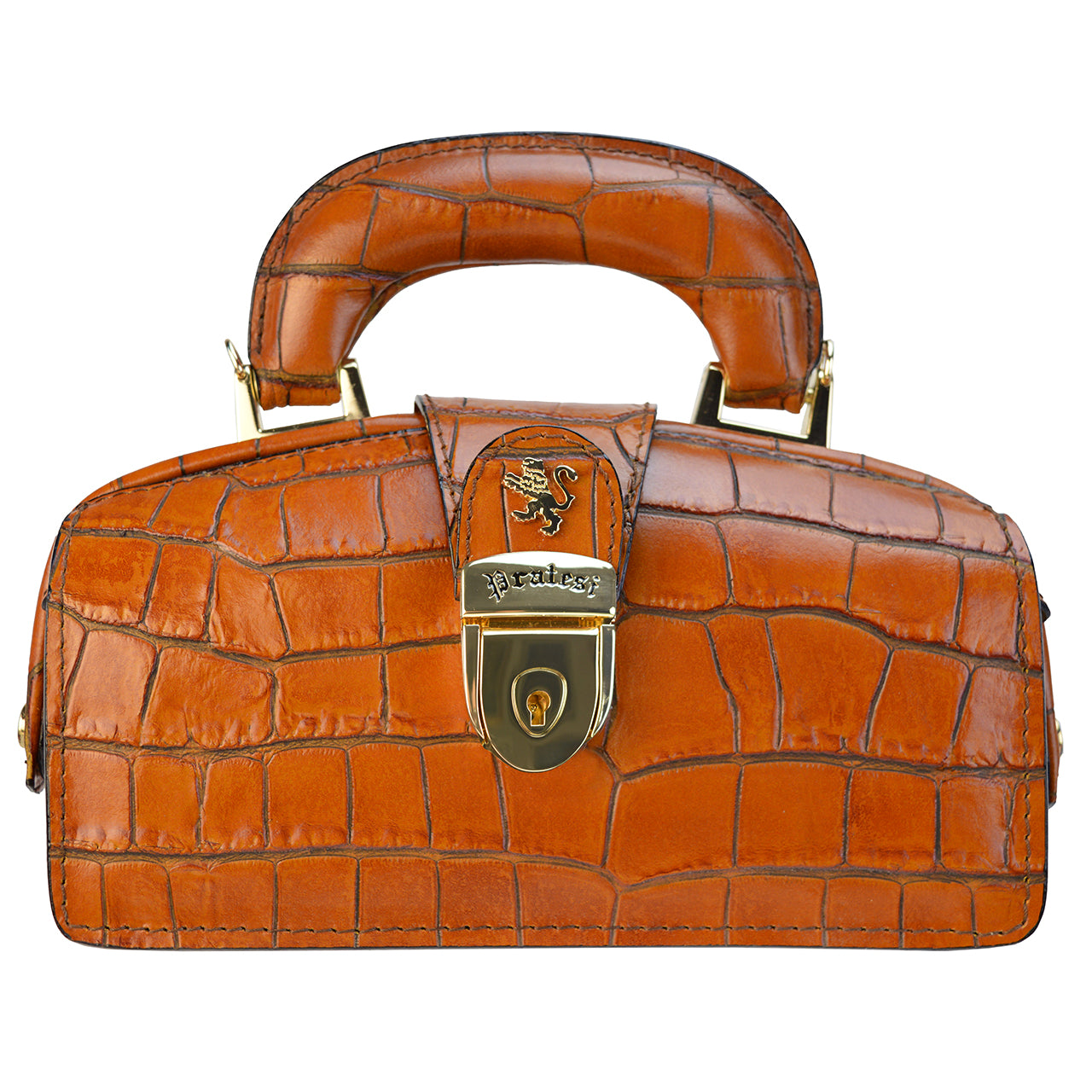 Pratesi Portovenere Bag in genuine Croco-Embossed Leather - Cognac