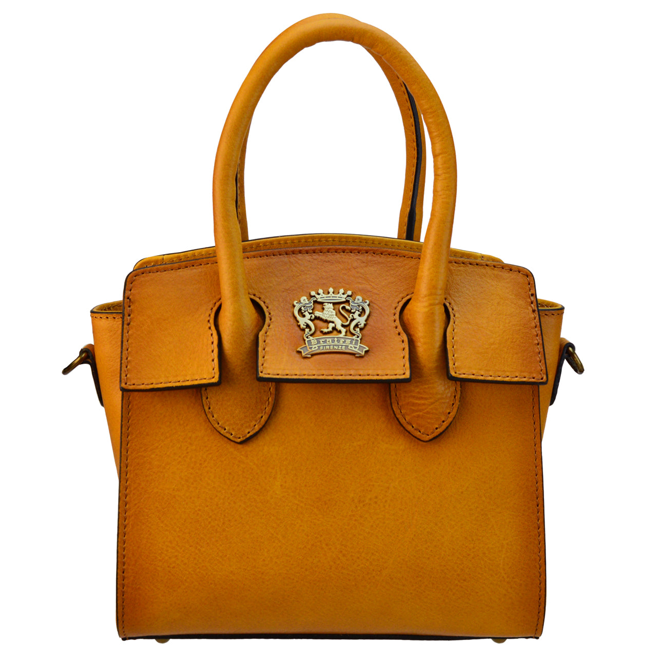 The metal parts of the handbag are brass-colored, adding a touch of elegance to its design. It comes with a removable shoulder strap and a cotton bag for storage. This handbag is a testament to the excellence of Florentine craftsmanship, with its impeccable quality and attention to detail. It is completely Made in Italy and bears the signature of the renowned brand Pratesi.