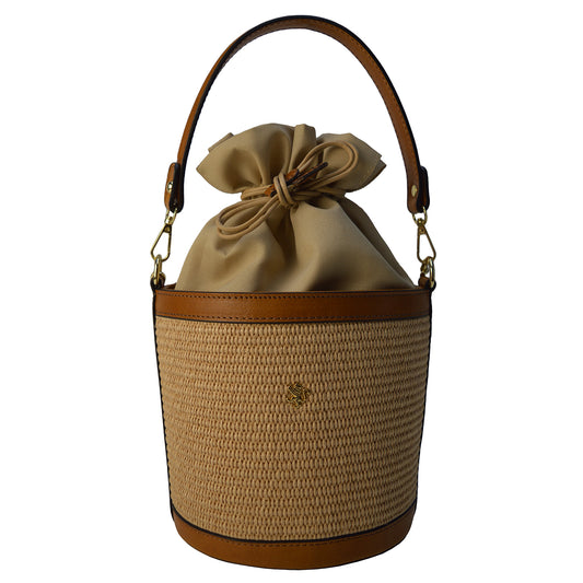 Bolso Pratesi Secchiello en cuero italiano genuino - Cuero Italiano de Curtido Vegetal Cognac