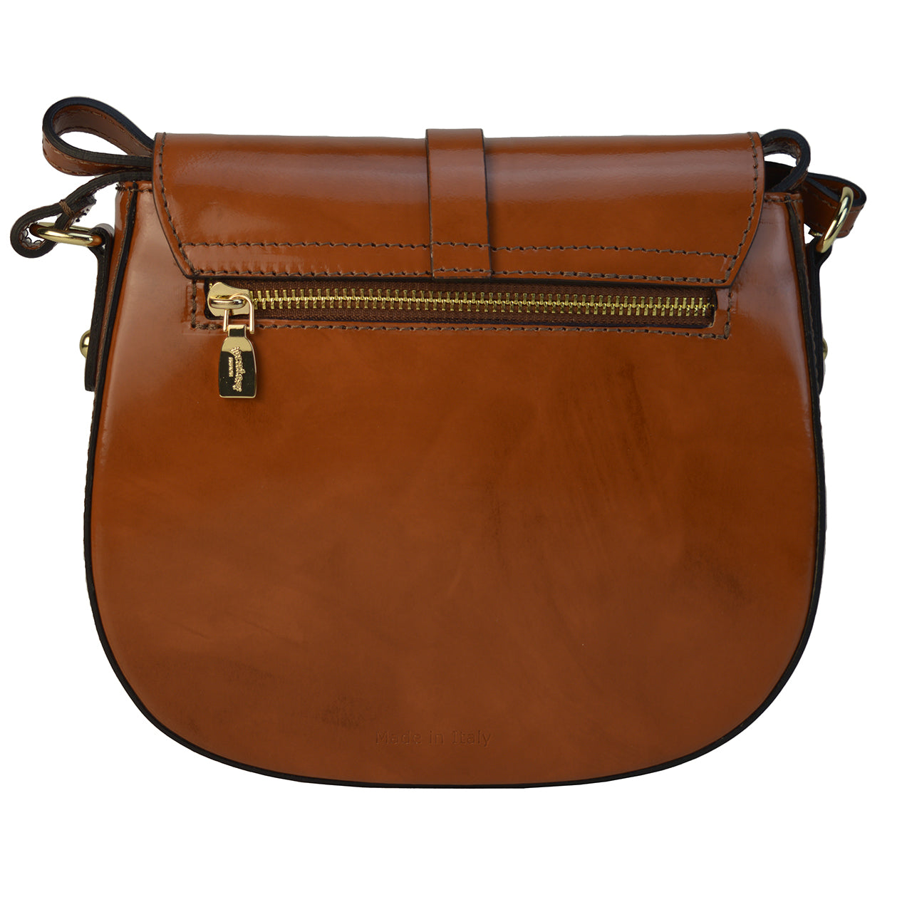 Sencillez y estilo se unen para crear un accesorio glamuroso: el bolso Pelago, de piel auténtica, es un accesorio sofisticado y sobrio, con un diseño esencial y elegante. La suave piel curtida según tratamientos vegetales que permiten el envejecimiento natural de la piel, aporta fascinantes y preciosos reflejos "ton sobre ton". Compuesto por un compartimento principal con doble cierre: solapa y cremallera para mayor seguridad, también tiene un bolsillo con cremallera situado en la parte trasera. Amplio y cómodo, este bolso bandolera completa el look de cada mujer de forma elegante y refinada. El logo identificativo de la marca está impreso en la parte frontal del bolso, enriqueciéndolo aún más.