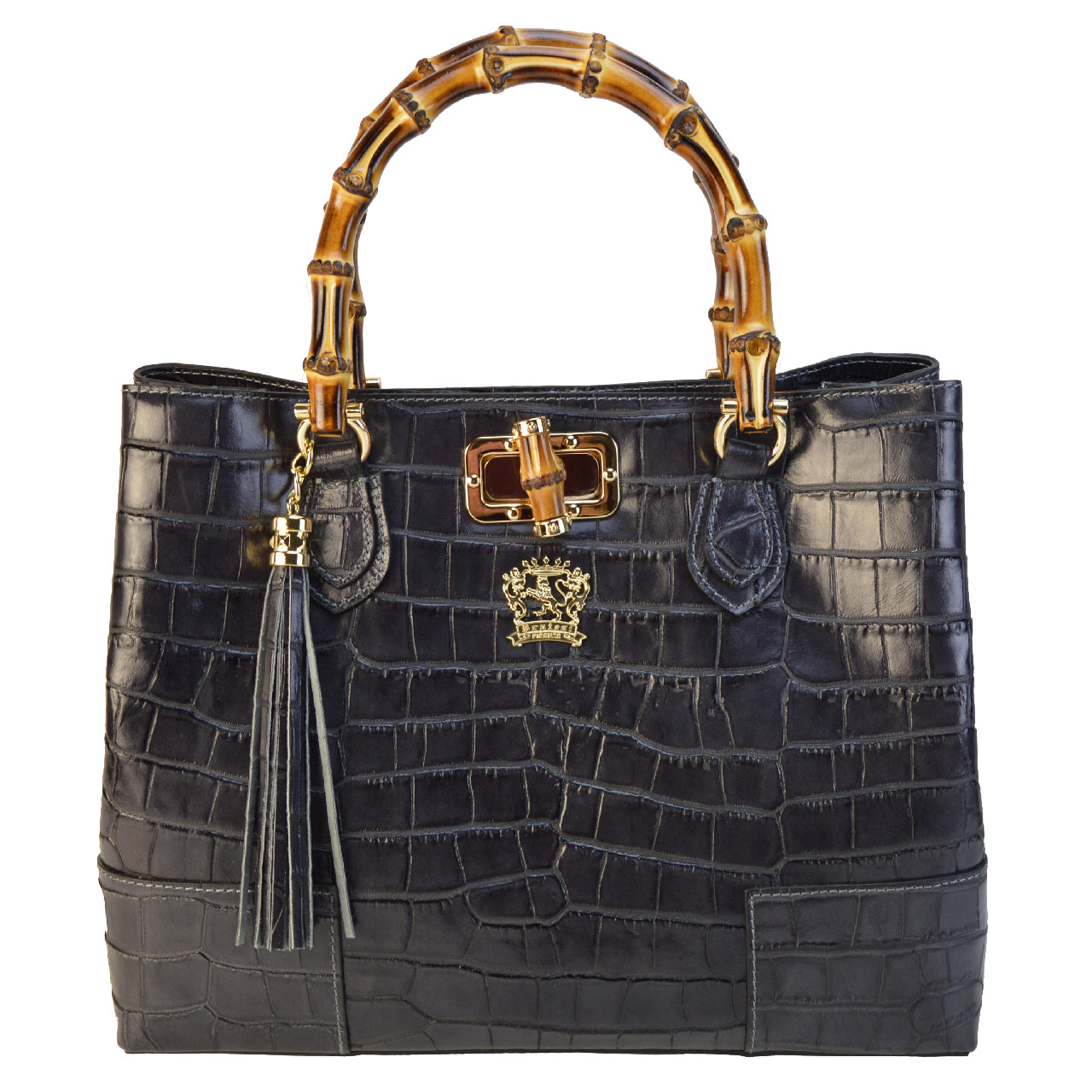 이탈리아 정품 가죽 소재의 Pratesi Castalia 레이디 백 - 악어 무늬 가죽 그레이