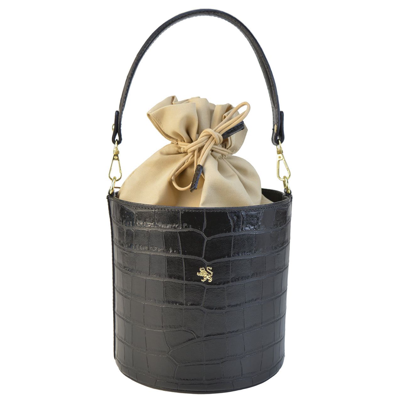 Pratesi Secchiello Lady bag K335 in genuine Italian leather - Croco Embossed Leather Black