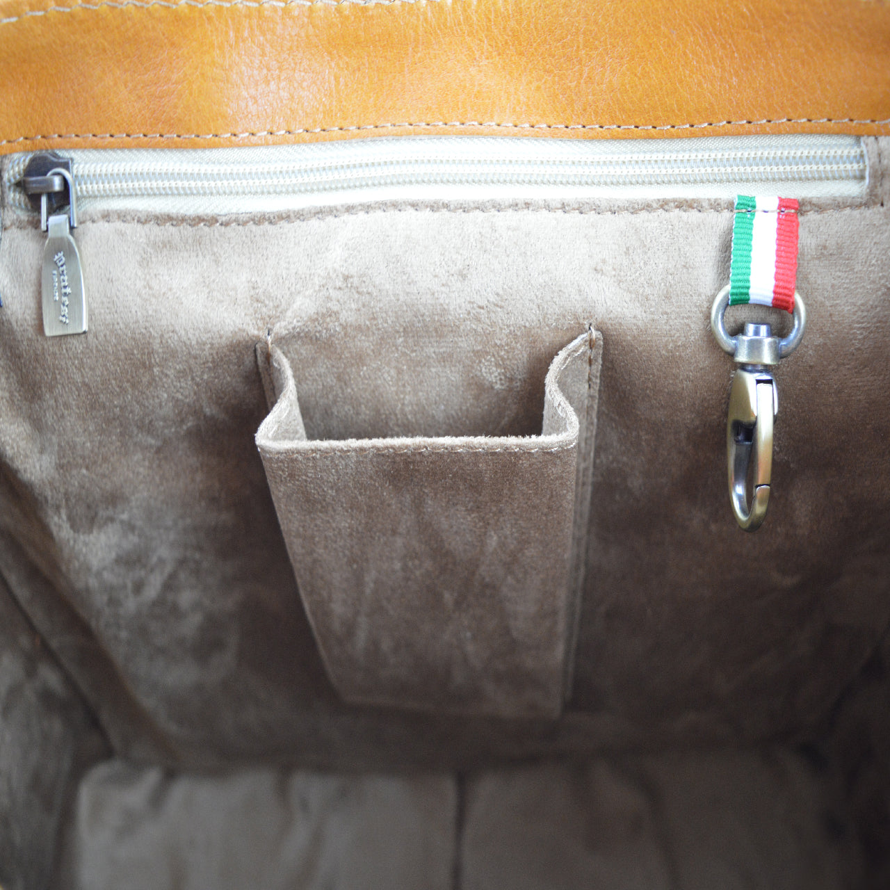 Welcome to our luxurious e-commerce store, where we offer the finest Italian leather products. Our latest addition is the Pratesi Bag Elba, a true masterpiece crafted from Italian vegetable-tanned leather. This unique technique, exclusive to Pratesi, results in a one-of-a-kind product that ages beautifully with use, adding to its charm and allure.The first stage of tanning involves the application of various natural products, including tannin, fat, and tallow, all of which are carefully selected and blended to create a secret formula. The end result is a stunning leather bag that exudes elegance and sophistication.Measuring 36 cm in width, 28 cm in height, and 18 cm in depth, this bag is the perfect size for all your daily essentials. The leather handles add a touch of luxury, while the automatic button closure ensures your belongings are safe and secure. And with a weight of just 1 kg, it is lightweight and easy to carry.Each bag comes with a cotton cloth bag plush, adding to the overall presentation and making it the perfect gift for yourself or a loved one. Made in Italy, this Pratesi bag is a true testament to the quality and craftsmanship of Italian leather. Elevate your style with the Pratesi Bag Elba.