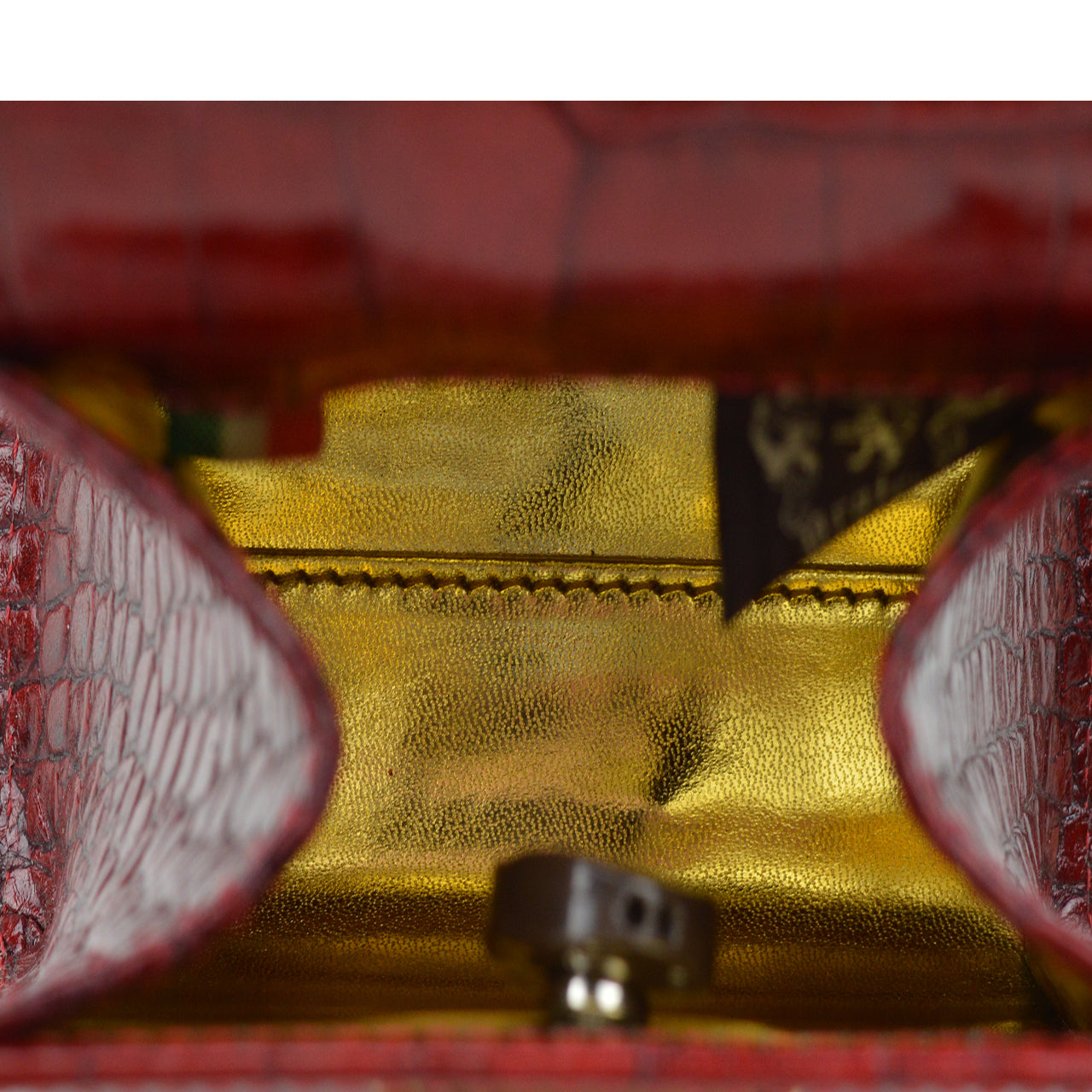 Compact and elegant, the Castalia bag features a large compartment with a turn lock closure and gold-colored metal accents. It also comes with a removable shoulder strap and a cotton storage bag. Available in a variety of colors, this bag is a must-have for any fashion-forward individual.