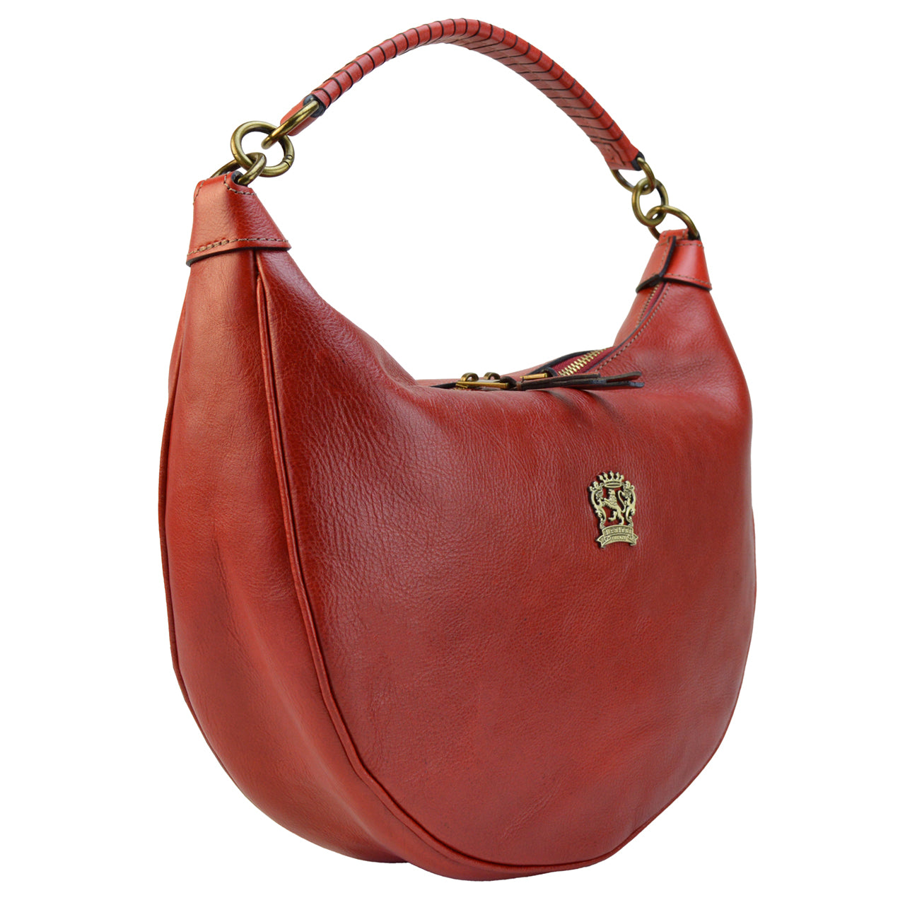 The Mezzaluna Handbag is available in a variety of colors, including Black, Brown, Yellow, Cherry, Chianti, Cognac, Purple, Gray, Orange, Dark Green, Electric Blue, White, Coffee, Emerald, Mustard, and the brand new Peach. Custom color options are also available upon request.