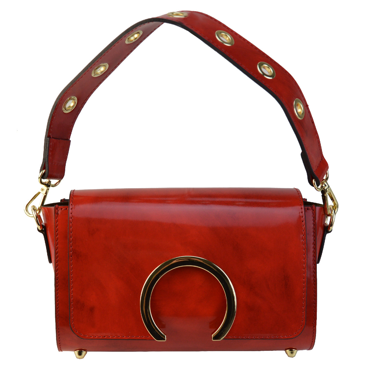 Unique hardware accents the rich leather, while a detachable shoulder strap provides versatile wear.