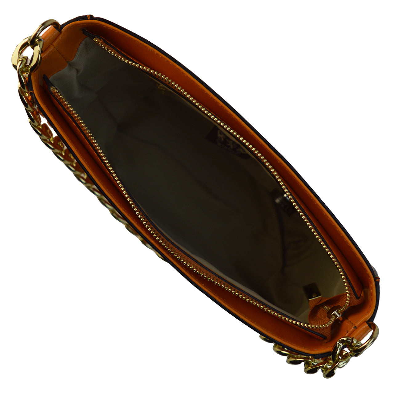 Compact yet functional, the bag features a sleek zip closure opening to a spacious main compartment, complemented by a small interior zip pocket for essentials. The refined gold-toned hardware adds a touch of sophistication, while the included detachable shoulder strap offers versatility in styling. Weighing just 600 g and measuring approximately 9 7/8" (L) x 7 1/2" (H) x 3 7/8" (D), it’s the perfect size for day-to-evening wear.