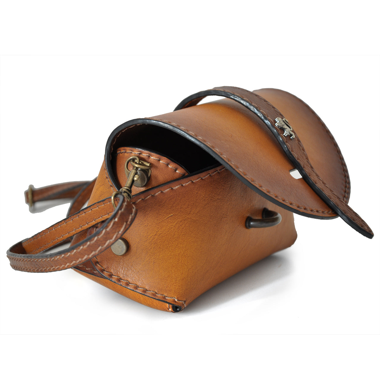 The Buonconvento Shoulder Bag is a luxurious and versatile accessory, perfect for any occasion. Made from genuine Italian vegetable-tanned leather, this bag features a semi-rigid structure and a single compartment with a lace closure. Inside, there is a timed light to help you find your belongings easily. The metal parts are bronze colored, adding a touch of elegance to the bag.