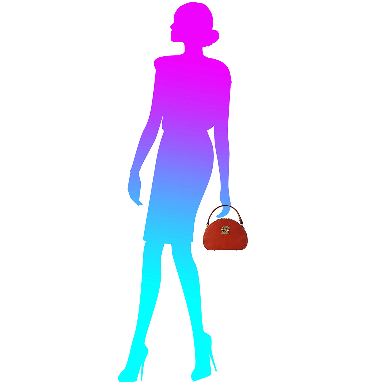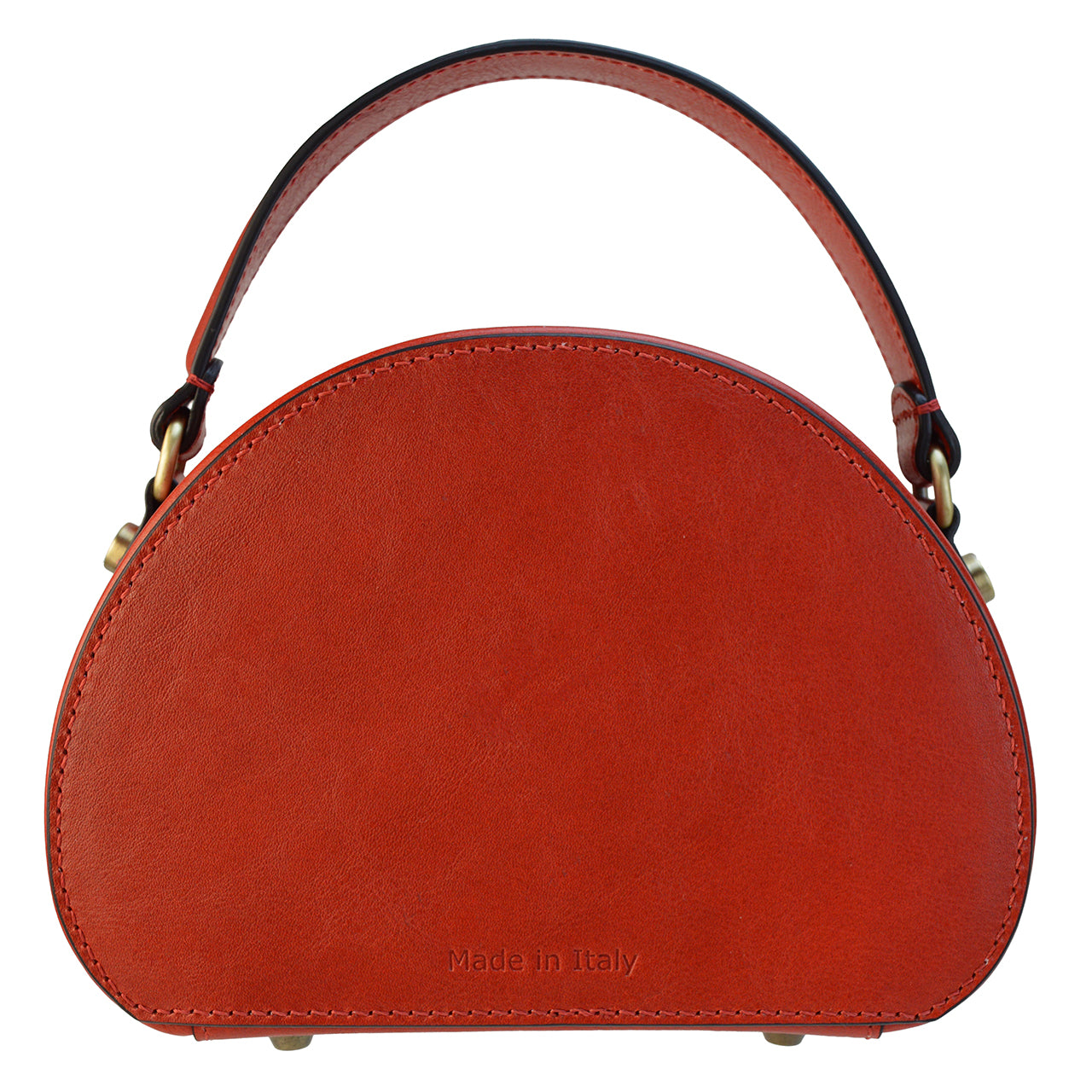 Introducing the Verona Gran Gala, a small handbag crafted from genuine Italian vegetable-tanned leather. Its rigid structure is composed of a large compartment with a zip closure, perfect for storing all your essentials. Inside, you'll find a convenient card holder pocket for credit cards, documents, and more. On the other side, a timed light makes it easy to find your favorite accessories. The metal parts are elegantly finished in Bronze.