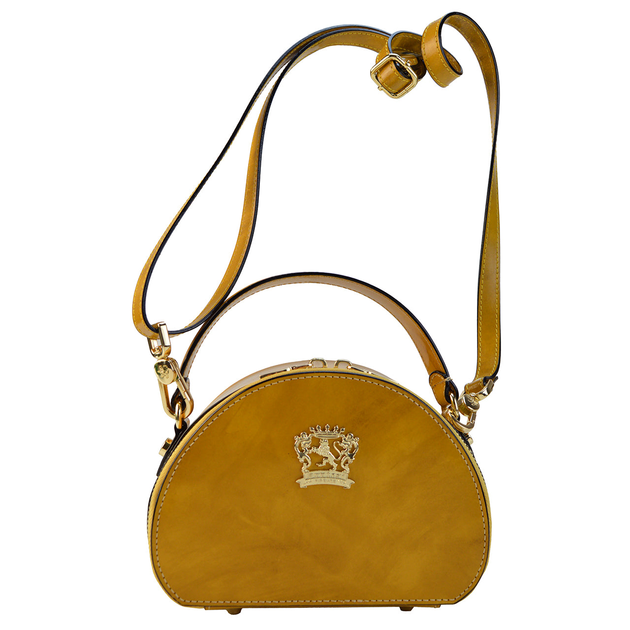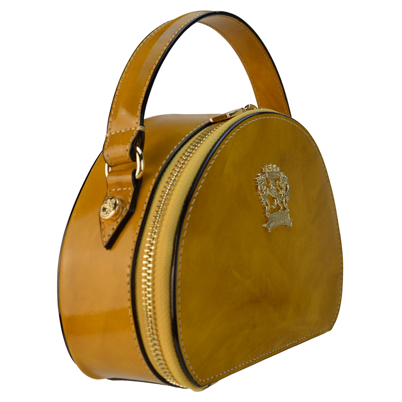 The Verona Gran Gala Handbag has undergone an initial aging process, giving it a charming and timeless appeal. It is available in a variety of colors, including Black, Brown, Yellow, Cherry, Chianti, Cognac, Purple, Gray, Orange, Dark Green, Electric Blue, White, Coffee, Emerald, Mustard, and the brand new Peach. Custom color requests can also be accommodated.