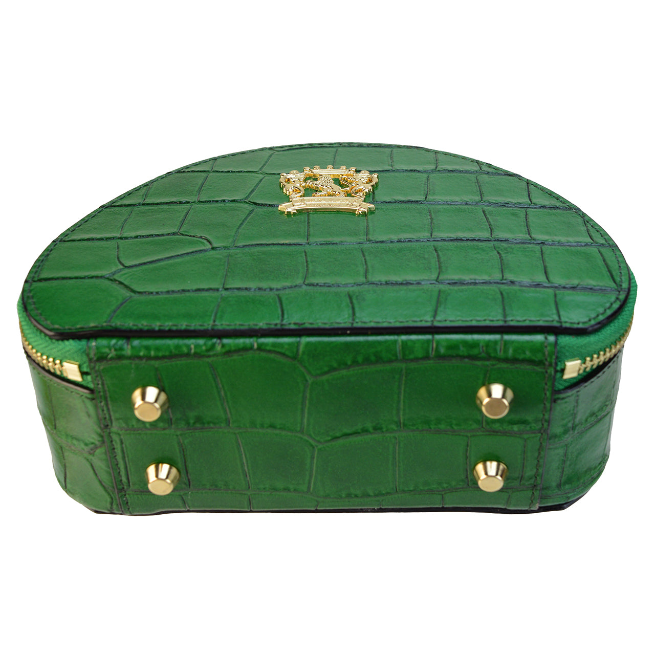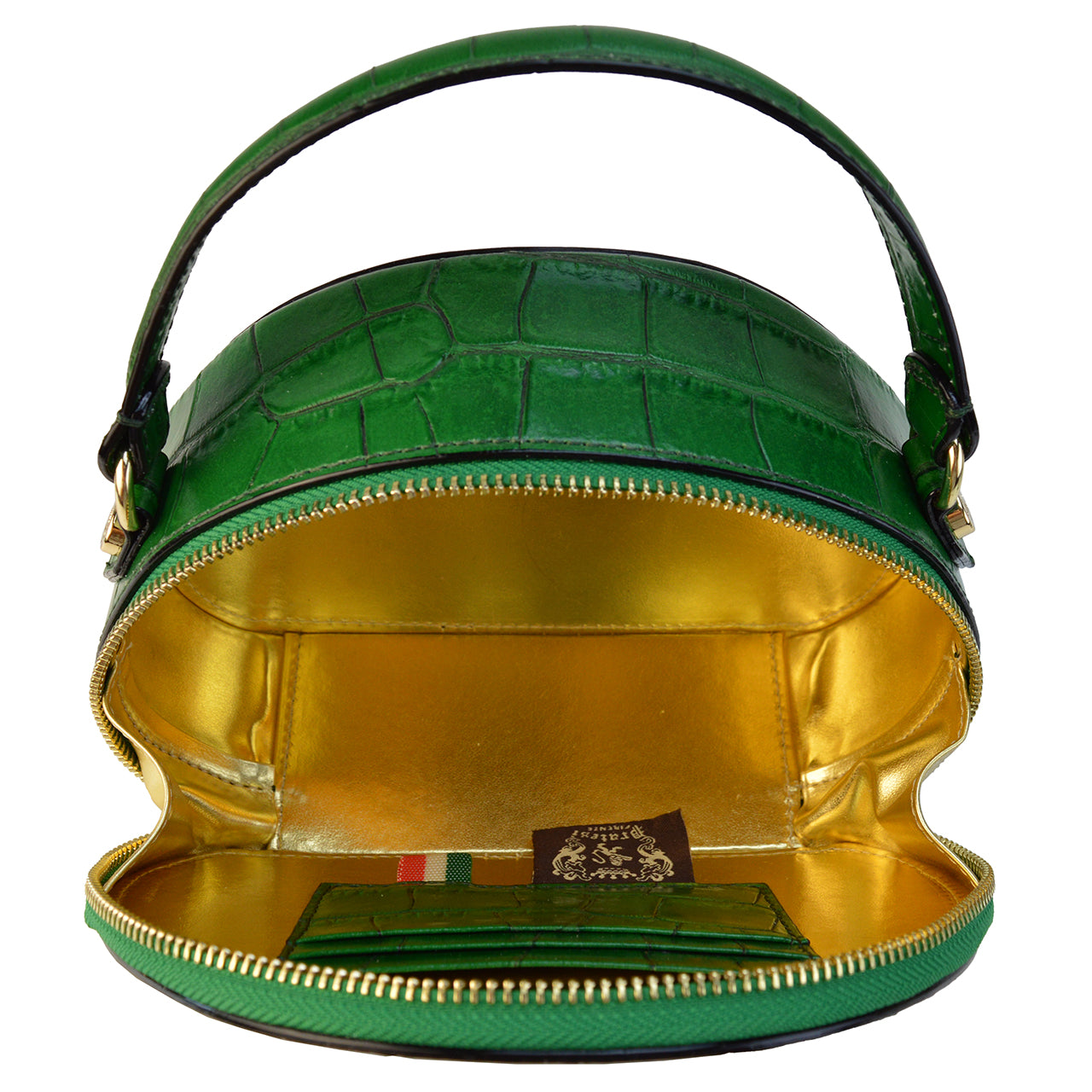 The Verona Gran Gala Handbag is a luxurious and versatile accessory made by the renowned Italian brand Pratesi. Crafted from genuine Italian King leather, this small handbag boasts a rigid structure and a large compartment with a zip closure. Inside, there is a convenient card holder pocket for storing credit cards, documents, and other essentials. The other side features a timed light to help you find your favorite accessories easily. The metal parts are elegantly finished in a Bronze color.